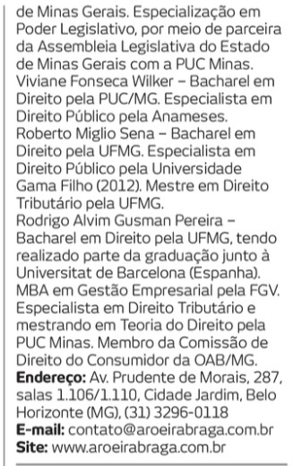 Parabenizamos toda a equipe do Escritório Aroeira Braga, seus colaboradores e parceiros pelo reconhecimento aos serviços prestados há mais de 30 anos ao povo mineiro.