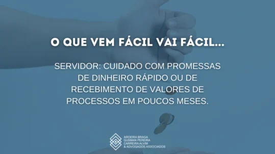 Servidor: cuidado com promessas de dinheiro rápido ou de recebimento de valores de processos em poucos meses. O